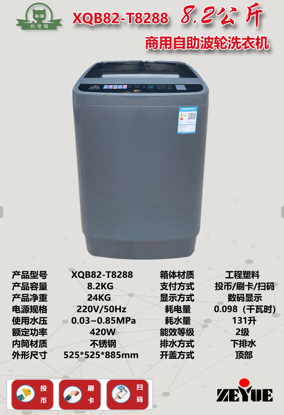 機智貓XQB82-T8288校園自助波輪洗衣機